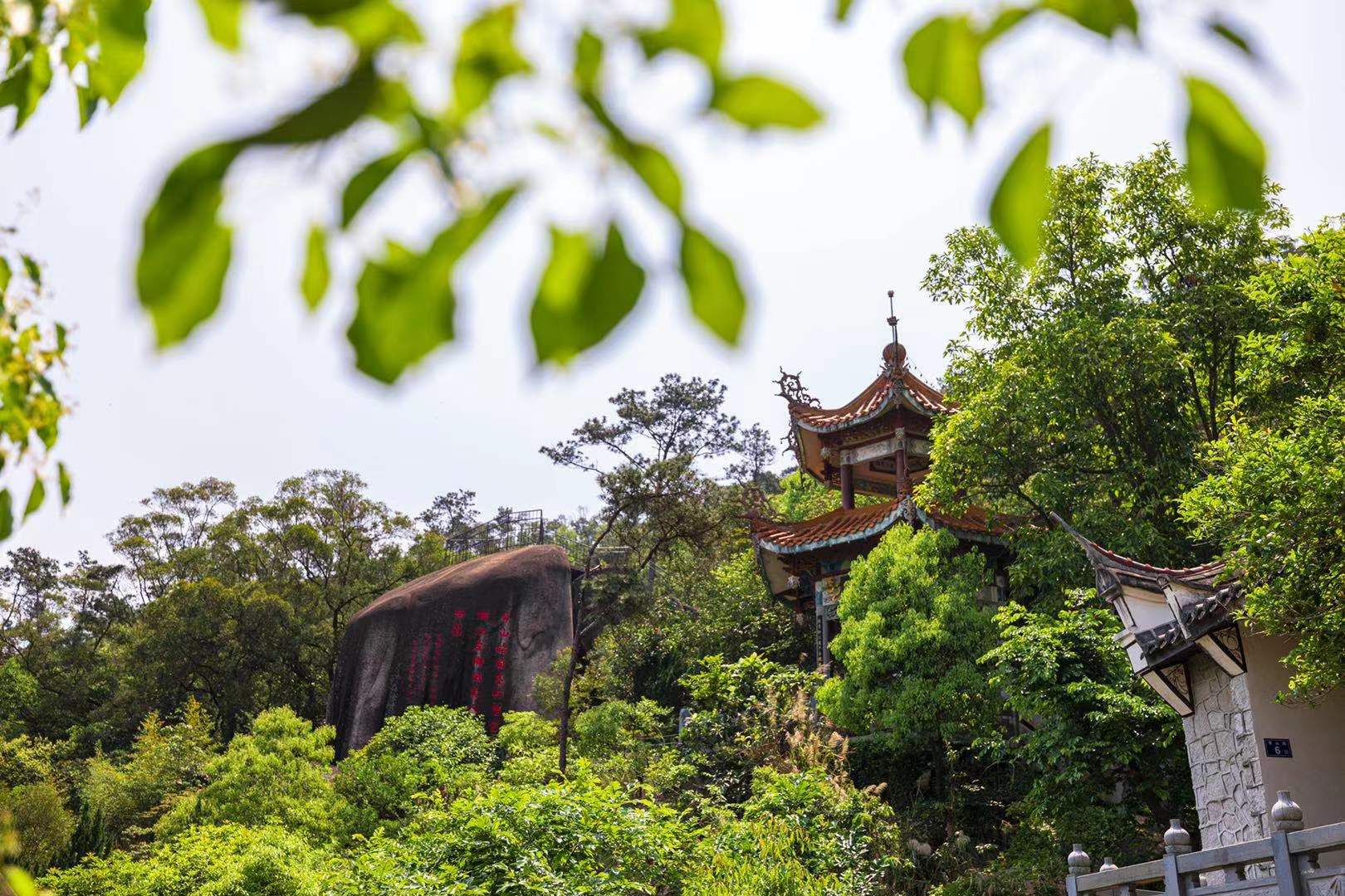 猴屿洞天岩,始建于宋朝,历史悠久,周围摩崖石刻众多,文化积淀深厚,是南宋吏部尚书端明殿学士郑丙万年清修之地。由山脚至山顶,逶迤相连300多米的天然石洞,有玉兔拜月、虎爪留踪等108处象形石,以及著名老书法家沈觐寿先生刻下的“一岩两树:同根并茂”等众多令人流连忘返的景观。